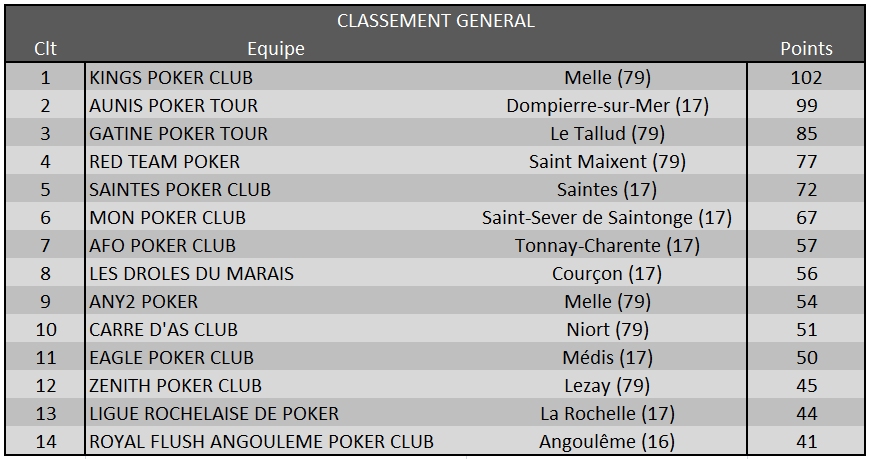 Voici le classement CREPP de nos joueurs qui ont participé à au moins 1 Sit&Go.