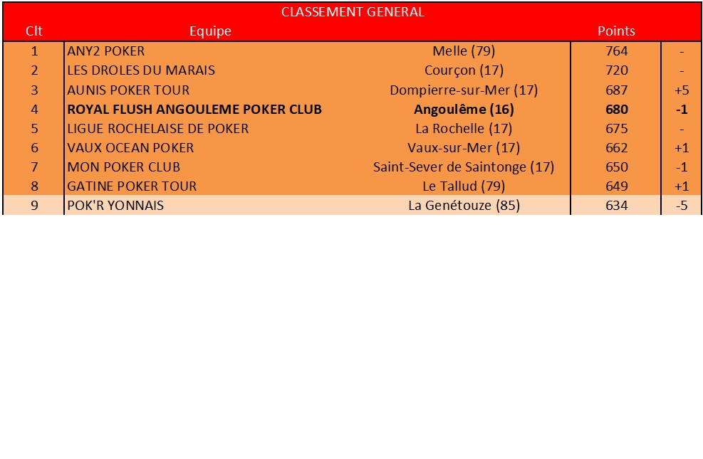 Voici le classement CFEPA de nos joueurs qui ont participé à au moins 1 Sit&Go.